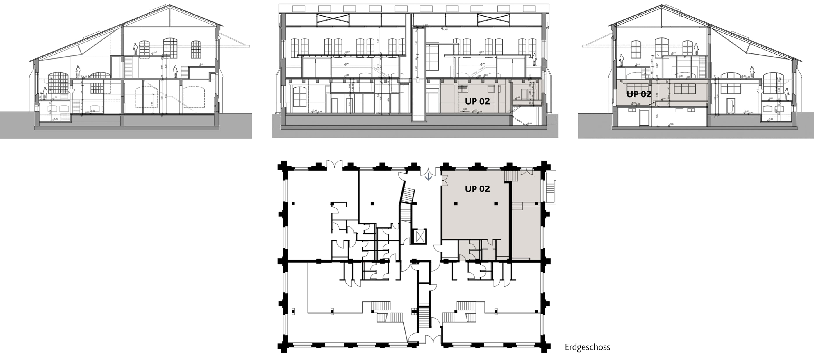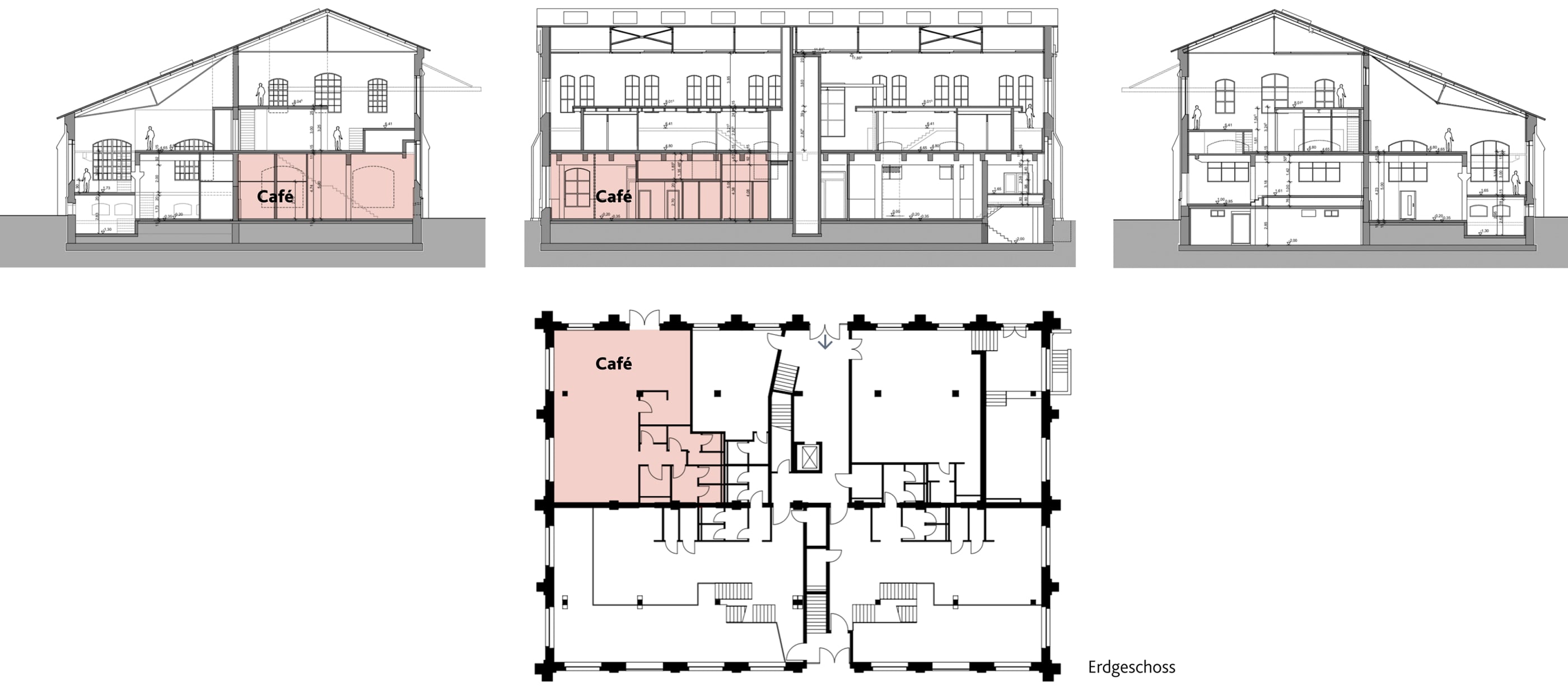 Die verschiedenen Zeitschichten des Bauwerks (Gebäudehülle von 1901, Umbau in den 1950er Jahren und jetzige Sanierung) werden nach dem Umbau erlebbar sein. Durch den teilweisen Rückbau von vorhandenen Geschossdecken sowie das Einziehen neuer Ebenen in Holzbauweise entstehen Räume, die modernen Anforderungen gerecht werden. Das Sichtmauerwerk wird außen saniert und erhält eine energetisch notwendige Innendämmung.