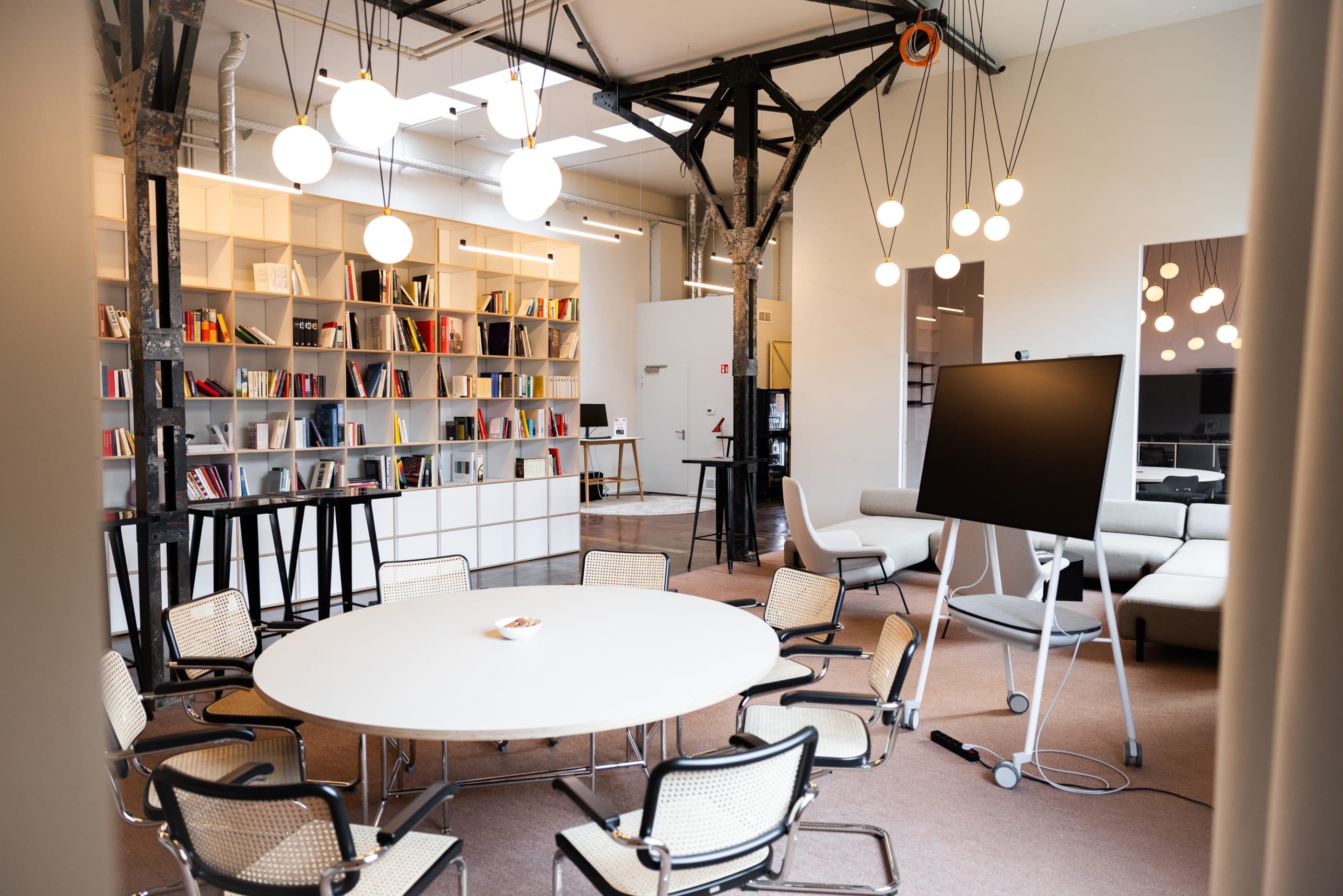 Das Café befindet sich direkt im historischen Kern des Marienparks und grenzt an die schönen Industriedenkmäler und ruhigen Grünflächen. Großzügige Fenster sorgen für einen hellen Innenraum und schaffen mit den verbleibenden historischen Bauteilen eine angenehme und einladende Atmosphäre.